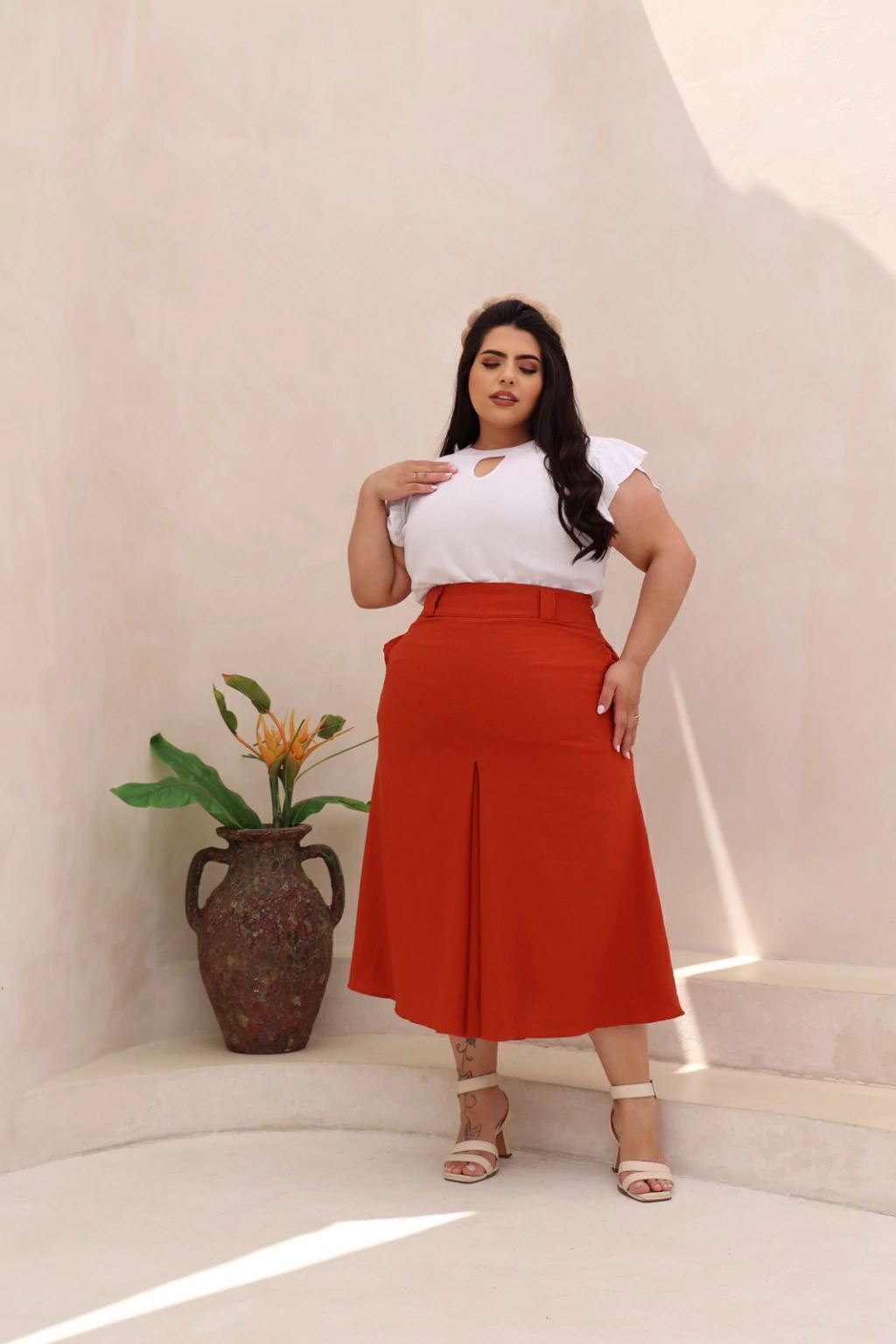 Conforto, elegância e versatilidade em uma única peça. Confeccionada em linho de alta qualidade, esta saia midi oferece um caimento impecável e sofisticado. O tecido leve e respirável garante frescor e bem-estar, ideal para o dia a dia ou ocasiões especiais.