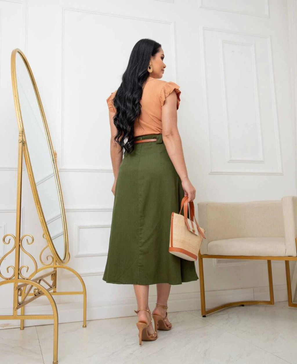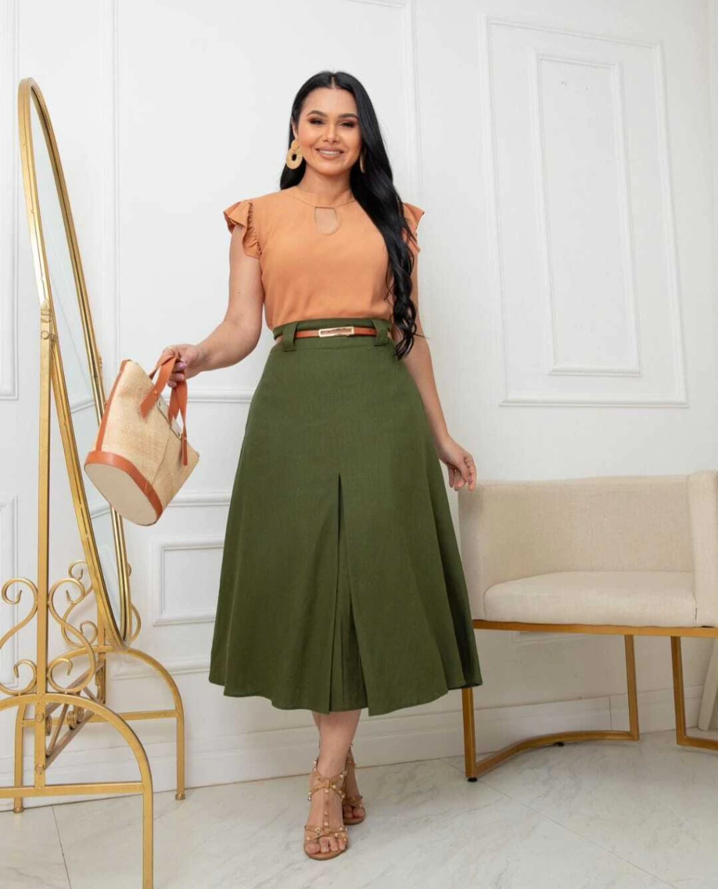 Saia Midi Linho Cintura Alta Social Evangélica – Elegância e Conforto para o Seu Estilo