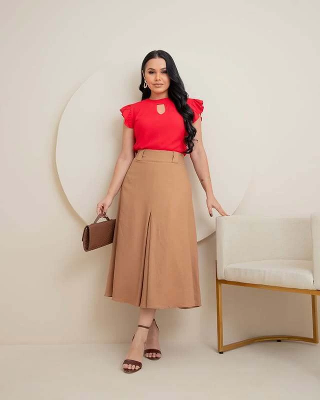 Com esta Saia você vai conquistar um look sofisticado, elegante e cheio de personalidade, ideal para mulheres que buscam uma combinação perfeita entre estilo e conforto no dia a dia.