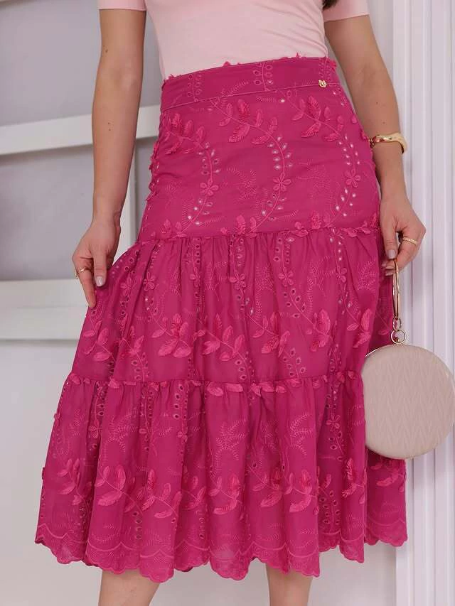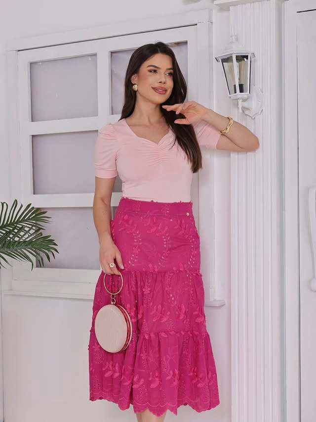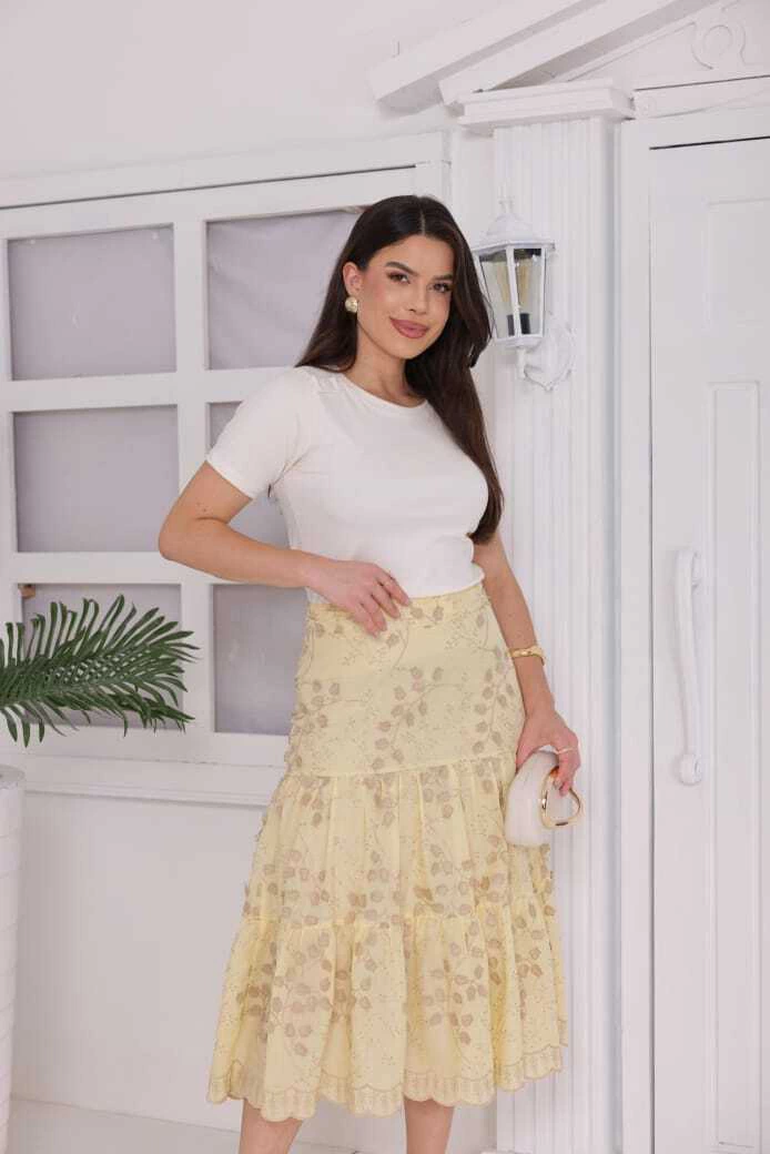 Saia Midi em Lesê 3D – Elegância Romântica e Conforto em Cada Detalhe