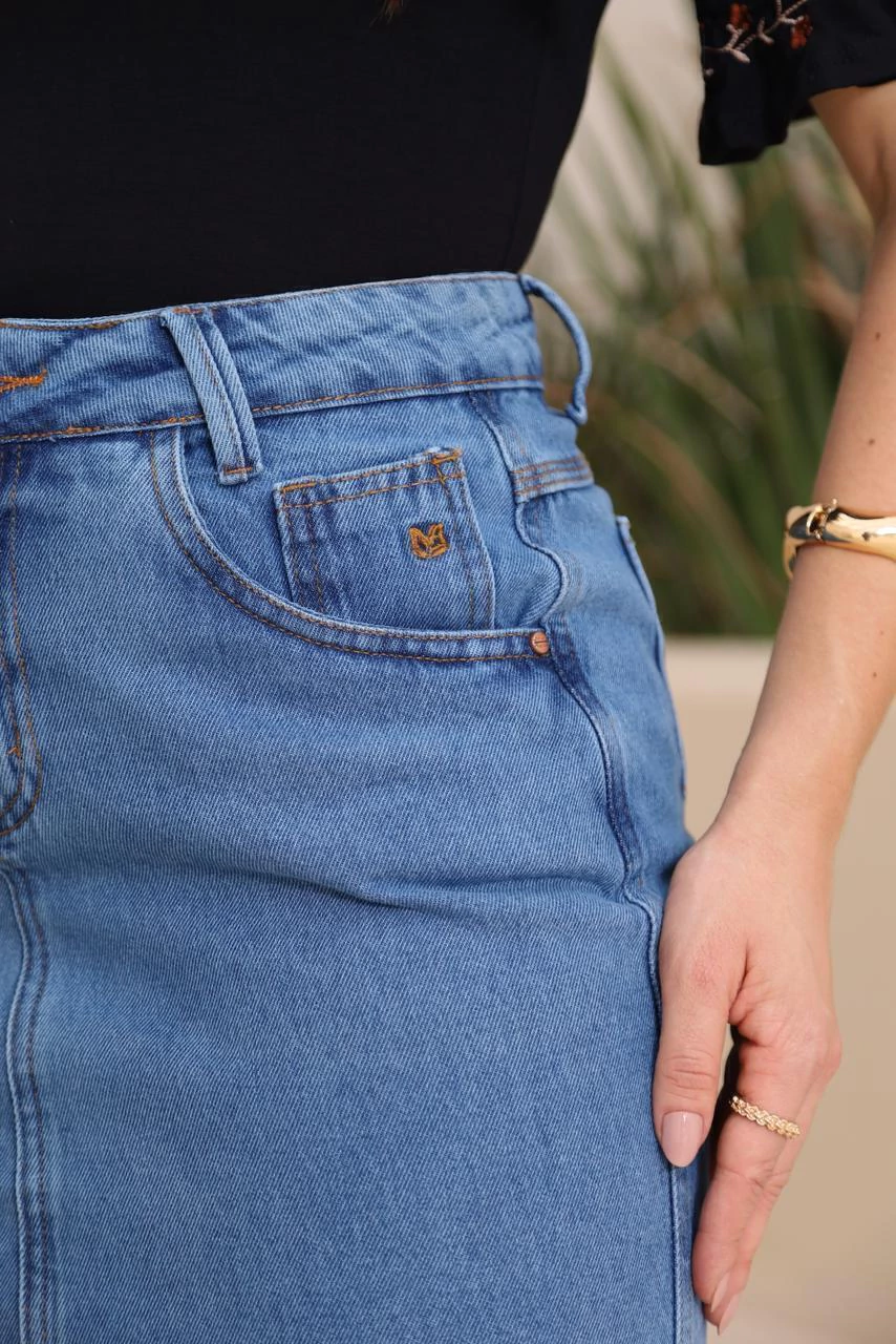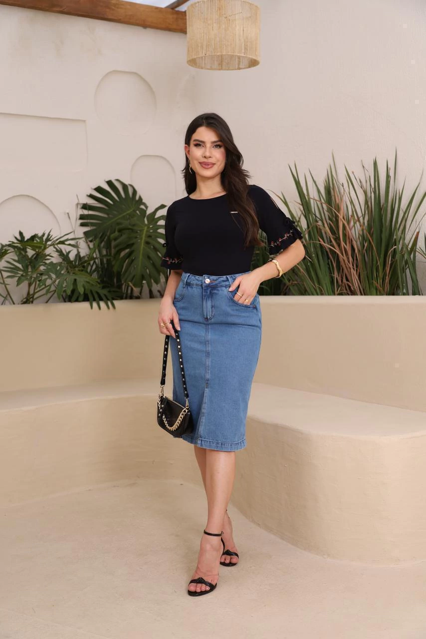 Saia Jeans Midi com Fenda Frontal – Elegância e conforto em um só look! Confeccionada em jeans 100% algodão, essa peça traz um toque sofisticado e caimento impecável. Ideal para compor visuais modernos e discretos, perfeita para o dia a dia ou momentos especiais.