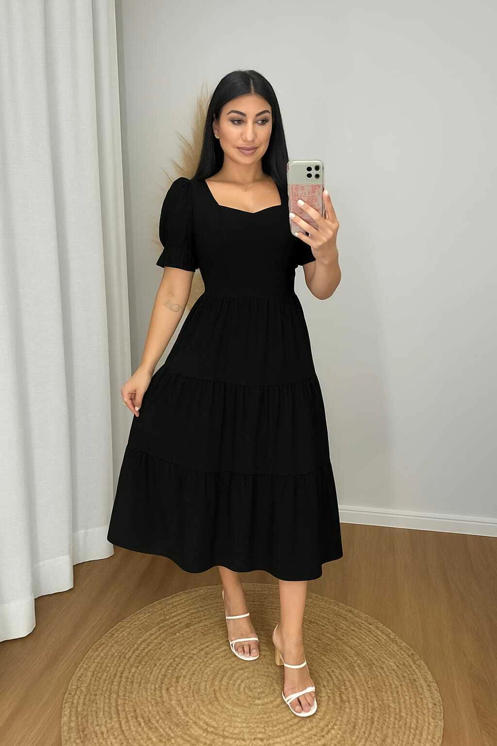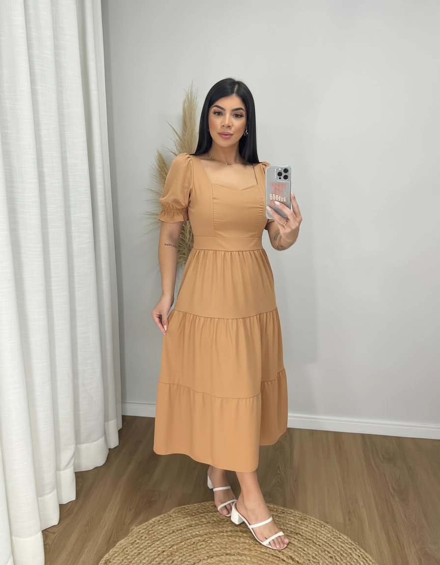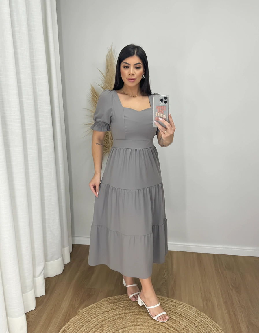 Confeccionado em tecido leve e de alta qualidade, este vestido garante um caimento impecável e um conforto inigualável durante todo o dia. A cintura marcada e a saia em camadas proporcionam um movimento fluido e gracioso, perfeito para diversas ocasiões. Seja para um passeio no parque, um encontro com as amigas ou um evento especial, você estará sempre impecável e à vontade.
